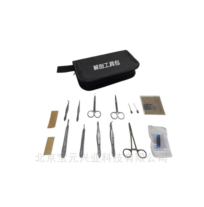 包括:大小镊子、弯镊子、剪、剪子、止钳、卵圆钳、烧杯、酒精灯配置在工具箱内。